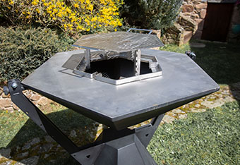 Grâce à son système unique de pivot sur axe, Le Cardinal se transforme en un clin d’œil : barbecue traditionnel, plancha généreuse ou véritable four à pizza.